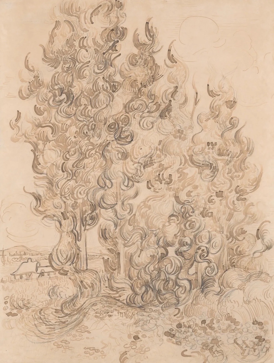 《糸杉》は、ペンとインクだけで南仏の大気を燃え上がらせた稀有なゴッホ作品です。